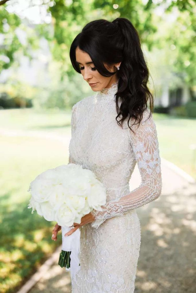 A high ponytail is the perfect blend of elegance and playfulness, making it an ideal choice for trendy brides. This bride hairstyles adds height and drama while keeping the hair sleek and polished. Whether curled for added texture or kept straight, a high ponytail looks stunning with statement earrings or a bold makeup look.