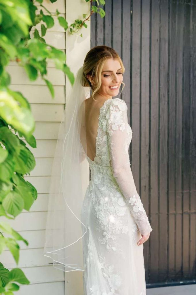 A textured lob is a modern and stylish choice for brides who prefer shorter hair. With soft waves and tousled layers, this bride hairstyles adds volume and movement while maintaining a chic, effortless feel. This look pairs beautifully with delicate hairpieces or bold earrings.