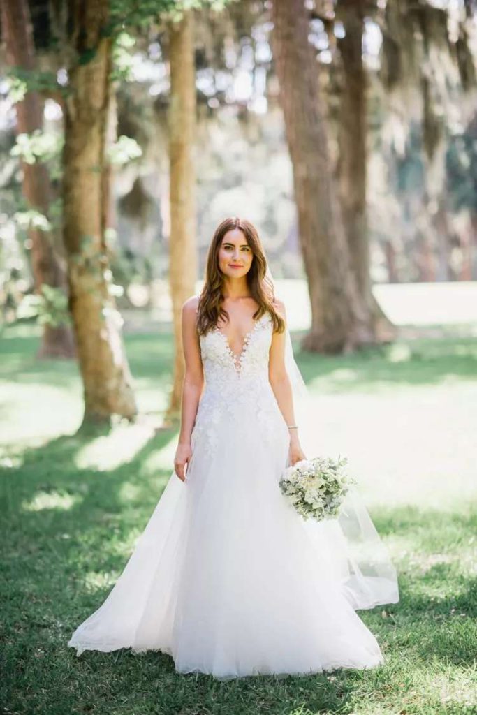 This breezy and natural bride hairstyles is perfect for outdoor or garden weddings. Whether styled into soft waves or an airy updo, this look embraces a light, effortless charm. Pairing it with fresh floral accessories enhances the organic beauty of the bridal look.