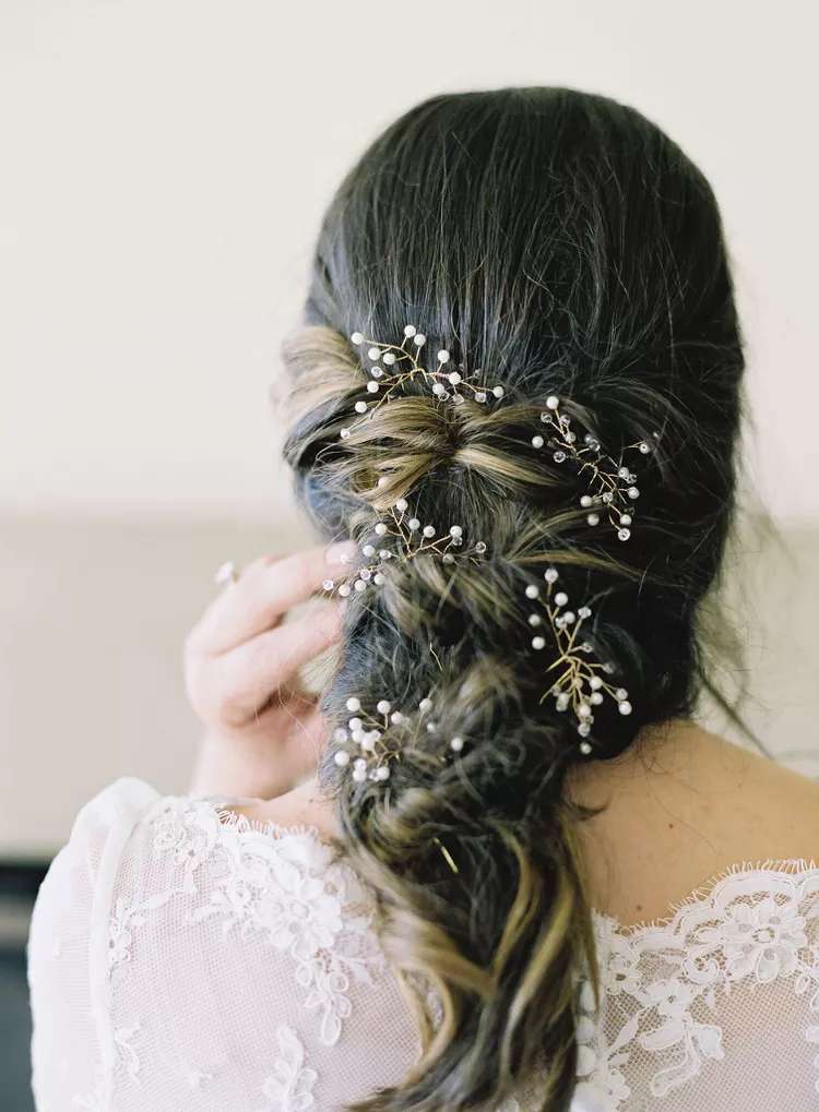 For a touch of vintage glamour, polished pearls bring sophistication to any bride hairstyles. Whether woven into an updo or scattered through soft curls, pearl accents add a refined and classic touch. This look is perfect for traditional brides seeking timeless beauty with a modern twist.