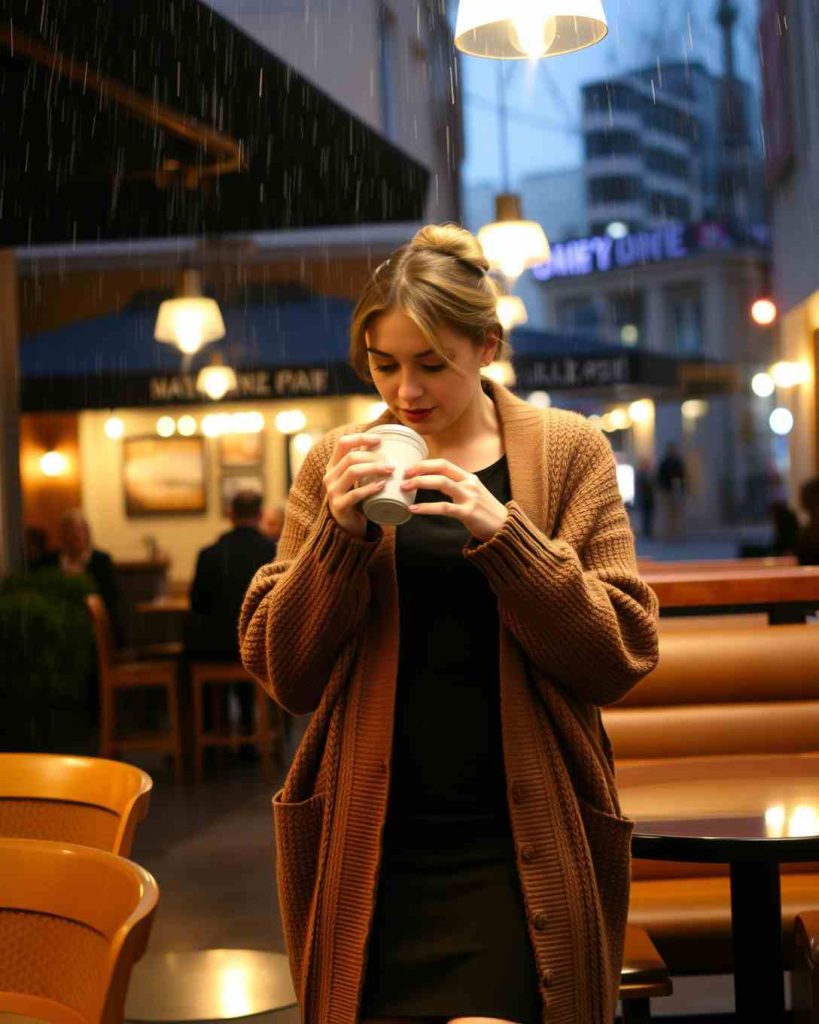 A cozy cardigan layered over a fitted dress combines comfort and style effortlessly. This is one of the coziest Date Night Outfit Ideas, perfect for a relaxed dinner or a casual movie date. The fitted dress enhances your silhouette, while the oversized cardigan adds warmth and a relaxed vibe. Pair it with ankle boots or flats for a chic, effortless look.