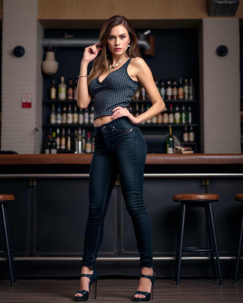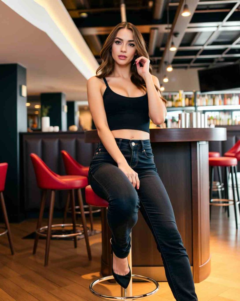 For a casual yet chic look, jeans and a statement top are a great choice. High-waisted denim pairs beautifully with an eye-catching blouse, lace top, or trendy crop top. This is one of the most versatile Date Night Outfit Ideas, perfect for coffee dates, movie nights, or a fun night out. Complete the look with heels or stylish sneakers for added flair.
