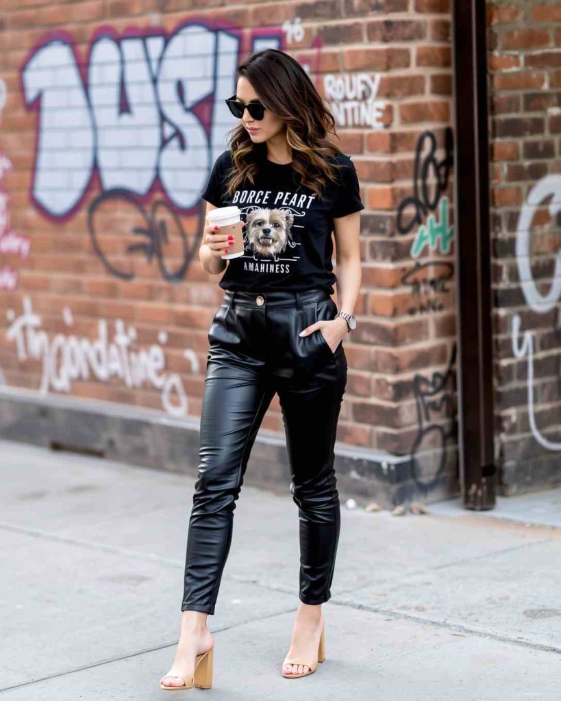 A graphic tee styled with leather pants is a fun and edgy choice for a casual yet stylish date night look. The mix of laid-back and sleek makes this one of the trendiest Date Night Outfit Ideas, perfect for a concert, game night, or casual drinks. Finish the look with chunky boots or heels for a fashionable touch.