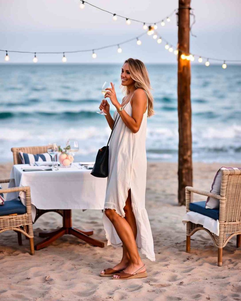 A linen dress is the ultimate summer date night staple, offering breathability and effortless charm. Paired with espadrilles, this look is light, comfortable, and perfect for warm-weather evenings. Whether it’s a seaside dinner, an outdoor café, or a sunset stroll, this is one of the most classic Date Night Outfit Ideas for a fresh and romantic summer vibe.