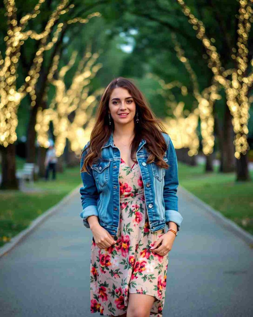 A denim jacket layered over a floral dress creates a cute and casual date night outfit. This combination works well for daytime dates, outdoor brunches, or a casual evening stroll. The floral dress adds a touch of femininity, while the denim jacket keeps it laid-back. Finish the look with sneakers for a relaxed vibe or wedges for extra elegance.