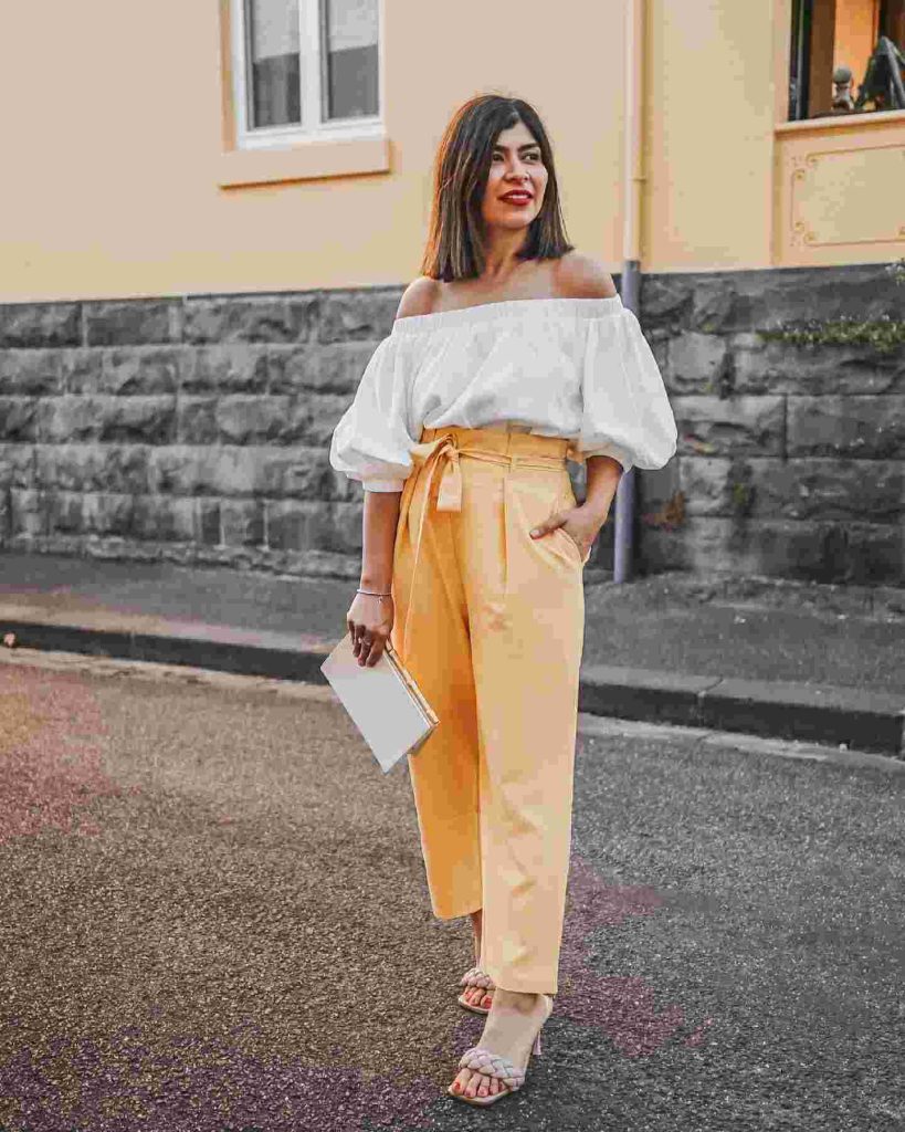 For a casual yet trendy Easter look, pair a puff sleeve top with jeans and sneakers. This combination offers a perfect balance of style and comfort, making it great for a relaxed holiday celebration. Whether you’re running errands or enjoying time with family, this Easter Outfit Ideas is effortlessly chic.
