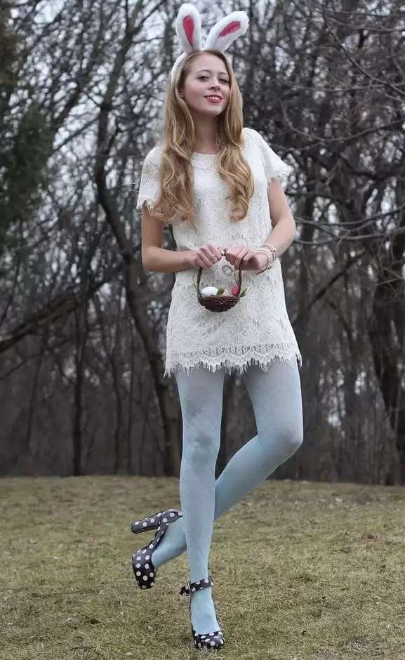 A floral mini dress paired with a knitted hat creates a cozy yet festive Easter look. This outfit is perfect for a breezy spring day, keeping you stylish while embracing the season’s charm. Whether you’re attending an Easter picnic or a casual gathering, this Easter Outfit Ideas is effortlessly cute.
