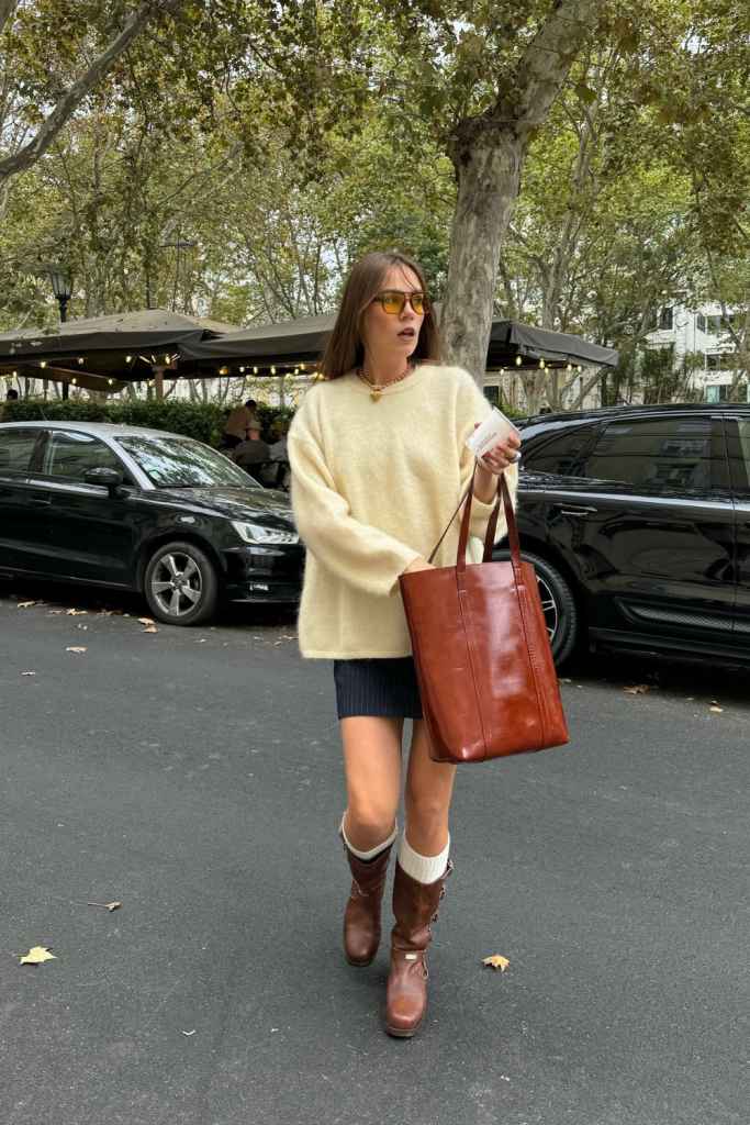 10. Yellow Sweater, Mini Skirt, Knee-High Boots