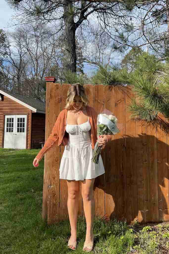 A corset dress paired with a soft cardigan and square-toe heels gives a romantic and stylish feel for Easter. This combination balances sophistication and comfort, making it ideal for church services or a formal brunch. Elevate your Easter Outfit Ideas with delicate accessories for a timeless springtime look.