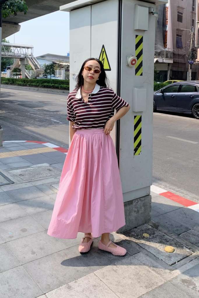 16. Polo Shirt, Bubble Skirt, Ballerina Flats