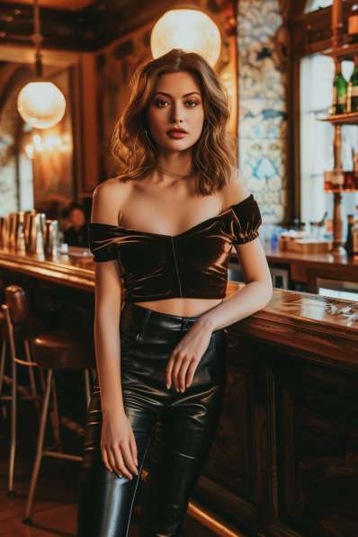 A velvet off-shoulder top brings a luxurious feel to any night-out look, while leather pants add the right touch of edge. This combination is both stylish and comfortable, making it a must-try for unique night out outfit ideas. Complete the look with sleek heels and statement jewelry.