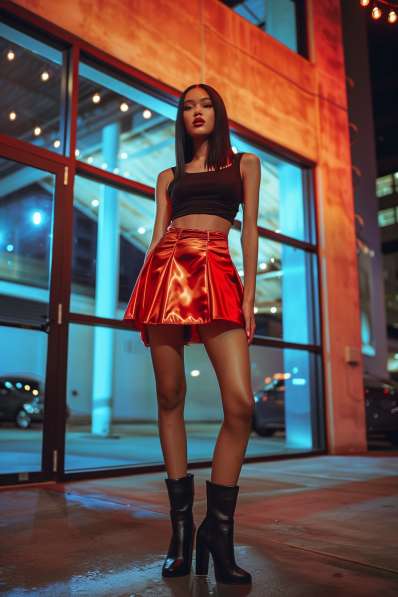 A shiny red mini skirt paired with a matching crop top is a fun and flirty choice. The glossy finish adds a trendy touch, perfect for dancing the night away. For bold night out outfit ideas, pair this set with strappy heels and a sleek clutch.