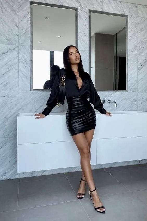 An all-black night-out outfit is effortlessly chic and always in style. Whether you choose a sleek black dress, leather pants with a fitted top, or a tailored jumpsuit, this look exudes confidence and sophistication. Elevate your night out outfit ideas with bold accessories, strappy heels, or a statement bag.