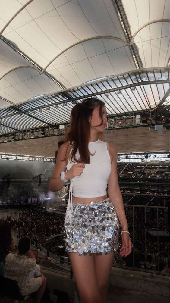 A white glitter night-out outfit brings glamour and elegance together. Whether it’s a shimmering mini dress or a chic sequin jumpsuit, this look is made for standing out. Pair it with nude or silver heels for night out outfit ideas that shine effortlessly.