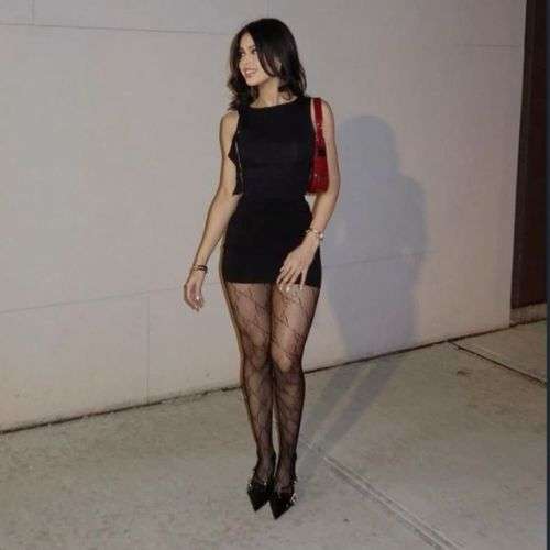 A sheer black dress paired with combat boots gives off a gothic-inspired yet ultra-chic vibe. Whether you add bold accessories or keep it minimal, this look is perfect for making a statement. It’s one of those night out outfit ideas that blend mystery and modern style effortlessly.