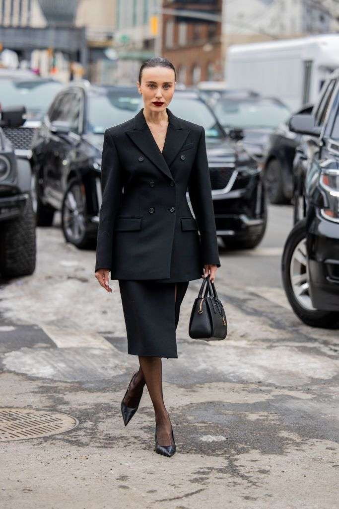An all-black outfit exudes confidence and elegance, making it a timeless choice for office outfit ideas. From tailored blazers to sleek pencil skirts, this monochrome look is effortlessly professional while allowing you to play with textures and accessories for added depth.