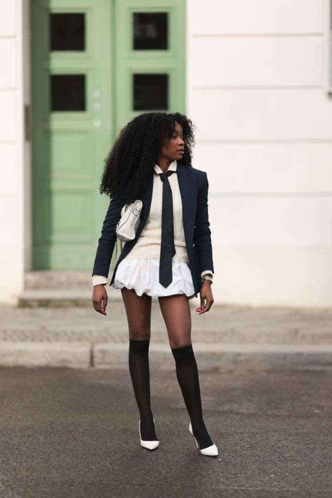 A bubble skirt offers a playful yet refined twist to office outfit ideas, balancing femininity with a structured appeal. Style it with a fitted blouse or blazer for a polished look that keeps you comfortable while making a statement in the office.