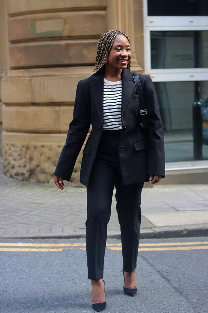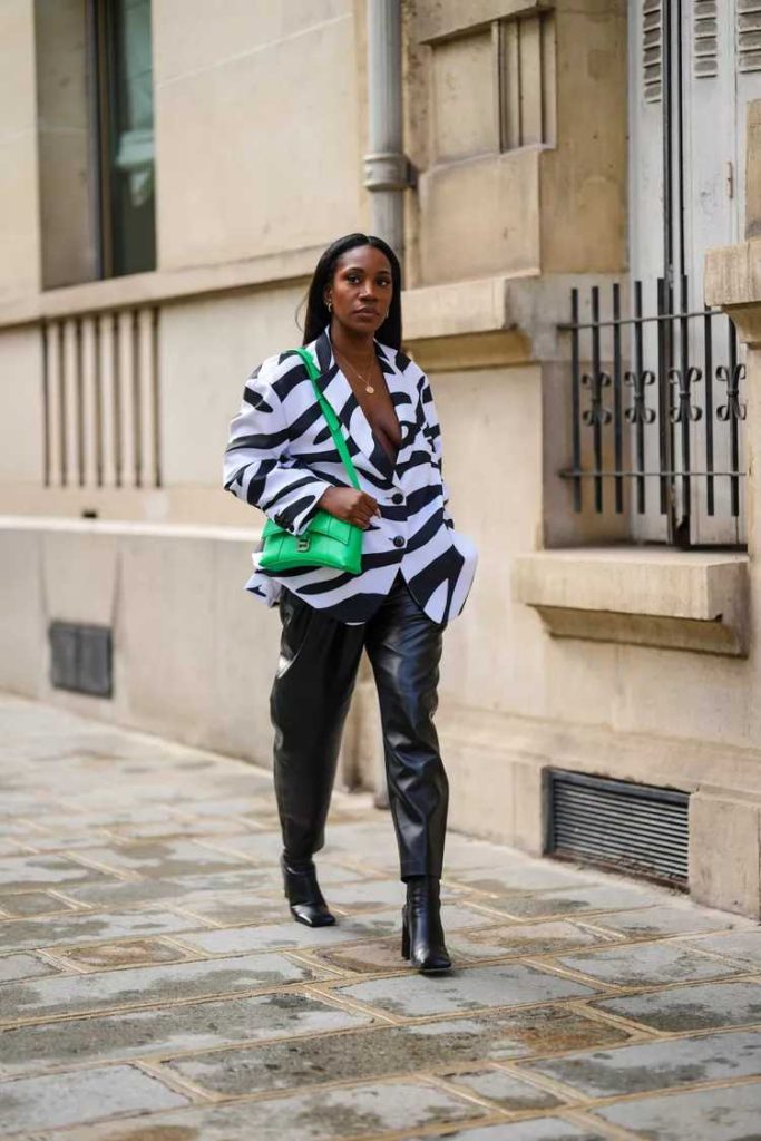 Classic yet contemporary, pinstripes are a go-to for office outfit ideas that prioritize refinement. Whether it’s a pinstripe blazer, trousers, or a structured dress, this pattern creates a sharp, elongated silhouette that commands attention in the workplace.