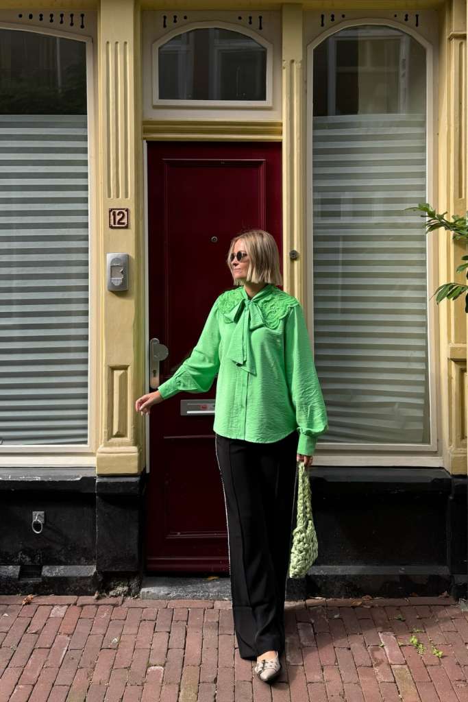 A green blouse paired with straight pants and flats makes for effortless office outfit ideas that blend style with comfort. The structured silhouette of straight pants adds a professional touch, while flats ensure all-day ease—perfect for busy workdays that require both polish and practicality.