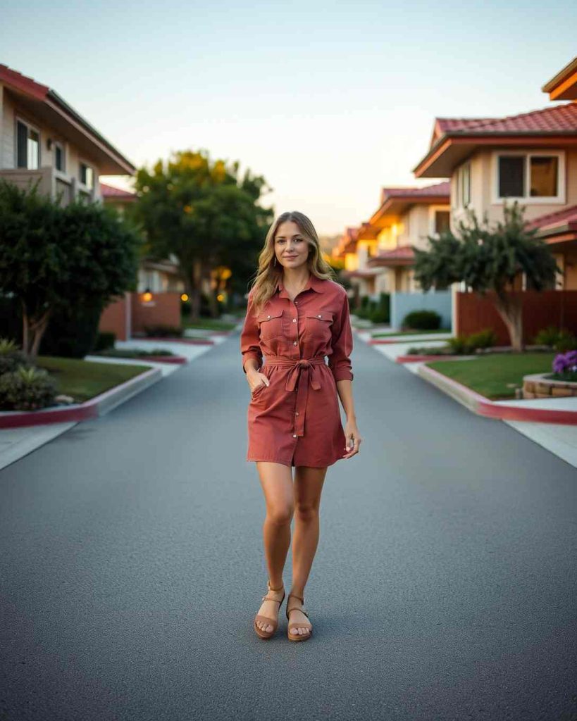 Button-up shirt dresses with a belted waist are versatile Palm Springs outfit, perfect for casual outings with retro flair.