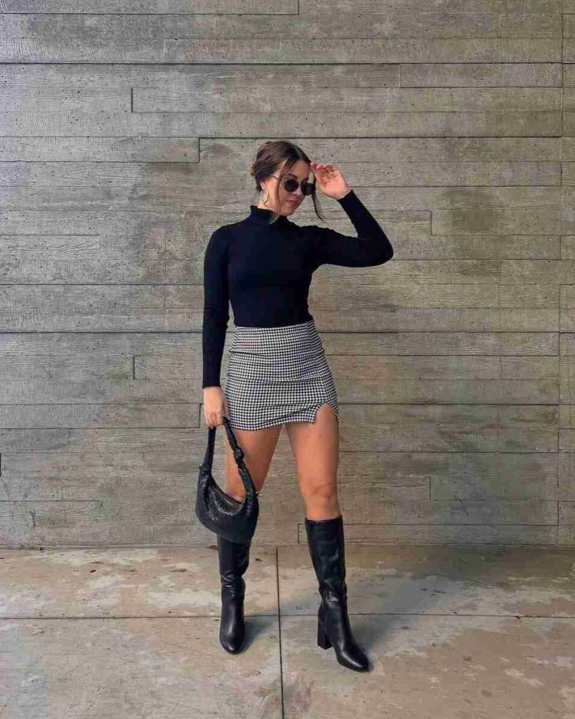 20. Turtleneck Sweater, Mini Skirt and Boots Outfit