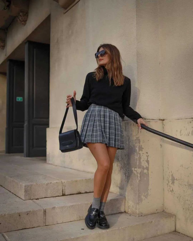 A turtleneck sweater paired with a mini skirt is a chic preppy outfit perfect for fall and winter. This combination keeps things cozy while maintaining a sleek, fashionable silhouette. Add knee-high or ankle boots for a sophisticated touch.