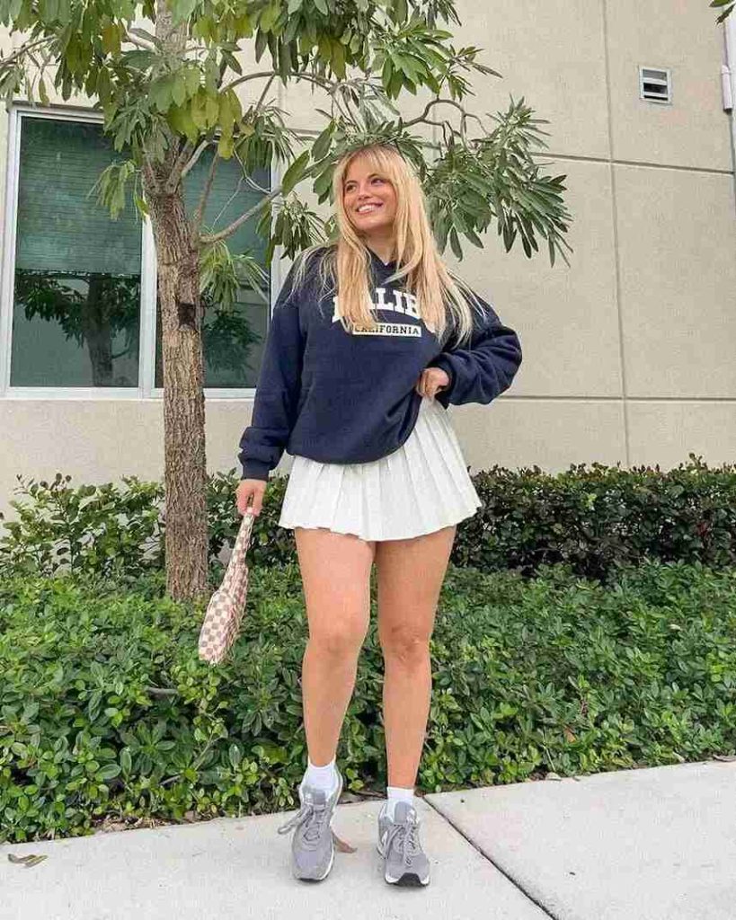 15. Pleated Skirt and Lettered Sweatshirt Outfit