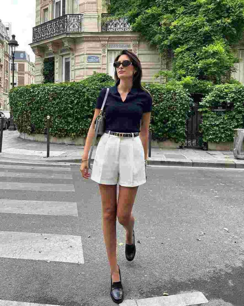 A polo shirt is a staple in preppy outfits, and pairing it with belted shorts creates a sleek, put-together look. This ensemble is great for warm-weather days, offering a classic yet modern feel. Add loafers or espadrilles for a fresh, effortless finish.