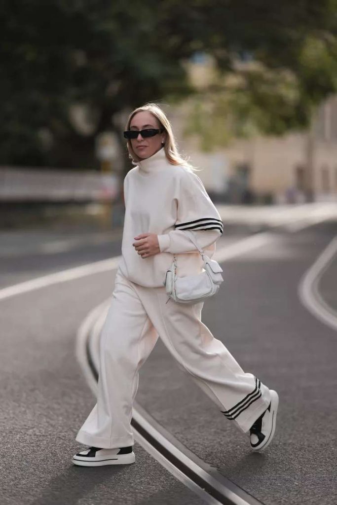 For a sporty yet stylish look, try Wide Leg Outfit Ideas that include a matching wide-leg pants and sweatshirt set. This modern take on a tracksuit is both comfortable and fashionable, making it ideal for travel or casual wear. Pair it with sleek sneakers and minimal accessories for a polished athleisure vibe.