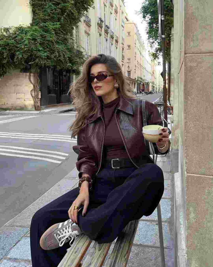 Leather-textured wide-leg pants instantly add an edgy flair to Wide Leg Outfit Ideas. When paired with bold neutral tones, the result is a modern, statement-making outfit. Complete the look with a fitted top and heeled boots for a fashion-forward vibe.